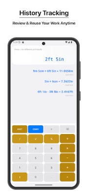 Η παρακολούθηση του ιστορικού διατηρεί κάθε υπολογισμό με την αρχική του μορφή, προσφέροντας μια πλήρη αναφορά για κάθε σας έργο και διασφαλίζοντας ότι καμία πληροφορία δεν χάνεται. Με ένα απλό πάτημα, η λειτουργία Smart Display Cycling εμφανίζει τα αποτελέσματα σε διαφορετικές μονάδες, παρέχοντας άμεση προσαρμοστικότητα στις ανάγκες σας. Σχεδιασμένο για να λειτουργεί άψογα σε iPhone και Android, τόσο σε κατακόρυφο όσο και σε οριζόντιο προσανατολισμό, το Architect Calculator εγγυάται μια ομαλή και αποτελεσματική εμπειρία χρήσης, προσαρμοσμένη απόλυτα στο δικό σας ρυθμό εργασίας και απαιτήσεις.