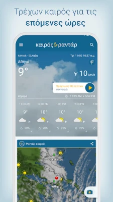 Ζήστε τον καιρό ζωντανά με το δυναμικό ραντάρ, το οποίο αποκαλύπτει όχι μόνο τη βροχή, αλλά και το χαλάζι, το χιόνι, τις περιοχές με ηλιοφάνεια ή συννεφιά, ακόμη και τους κεραυνούς κατά τη διάρκεια καταιγίδων. Για συνεχή ενημέρωση με μια ματιά, εκμεταλλευτείτε τα κομψά και πλήρως παραμετροποιήσιμα widgets της εφαρμογής **Καιρός**. Προσαρμόστε τα εφέ, το μέγεθος και το στυλ τους για να εμφανίζουν τις κρίσιμες καιρικές συνθήκες για την τοποθεσία σας ή για οποιοδήποτε μέρος του κόσμου, όπως η Αθήνα ή η Θεσσαλονίκη, απευθείας στην οθόνη σας.