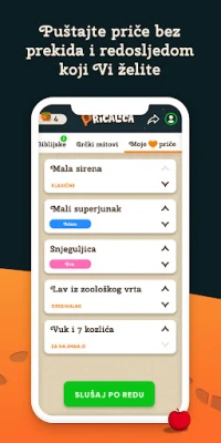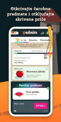 Στο πλούσιο περιβάλλον της Pričalica, θα ανακαλύψετε μια ατελείωτη ποικιλία ιστοριών. Επιλέξτε ανάμεσα σε πάνω από 2000 διαφορετικά ανδρικά και γυναικεία ονόματα για τις προσωπικές αφηγήσεις σας. Απολαύστε κλασικά παραμύθια και ιστορίες από κάθε γωνιά του κόσμου, ή βυθιστείτε σε ολοκαίνουργιες, πρωτότυπες δημιουργίες που γεννήθηκαν στο δικό μας εργαστήρι φαντασίας. Για τις στιγμές χαλάρωσης και πριν τον ύπνο, η εφαρμογή προσφέρει δυνατότητα συνεχούς αναπαραγωγής επιλεγμένων ιστοριών, νανουρίσματα για το τέλος και ρύθμιση του φωτισμού της οθόνης για μια πιο απαλή ατμόσφαιρα. Καθώς τα παιδιά απολαμβάνουν τις αφηγήσεις, συλλέγουν "μαγικές σταγόνες" για να ξεκλειδώσουν νέες περιπέτειες, και "μαγικά αντικείμενα" που αποκαλύπτουν κρυφές ιστορίες, μετατρέποντάς τα σε αληθινούς μάγους ή ξωτικά των παραμυθιών. Με περισσότερες από 150 ιστορίες και πάνω από 30 ώρες ακουστικού περιεχομένου, που ζωντανεύουν από τις φωνές καταξιωμένων ακαδημαϊκών ηθοποιών, η Pričalica είναι ο ιδανικός σύντροφος για κάθε σύγχρονο γονέα, προσφέροντας έναν μοναδικό και συναρπαστικό τρόπο να αφηγείστε ιστορίες και να ξαναζήσετε τη μαγεία της παιδικής ηλικίας.